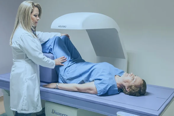 É um exame de imagem que mede a densidade mineral óssea, avaliando a massa óssea em regiões como coluna lombar e fêmur.